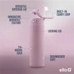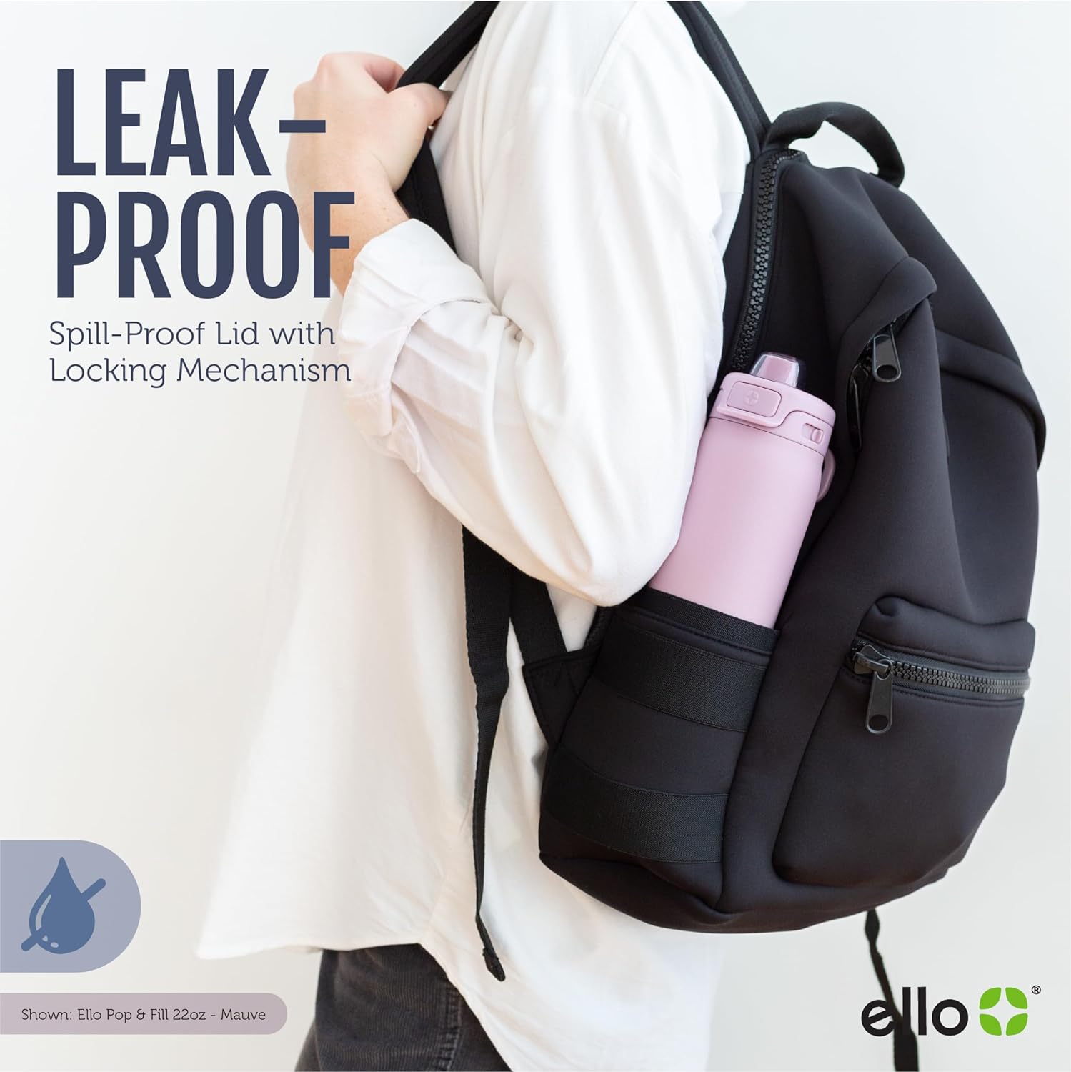 Elevate your hydration experience with the Ello Pop & Fill insulated stainless steel water bottle featuring a convenient push-button lid and a secure locking mechanism. Premium double wall stainless steel construction provides unmatched durability while keeping drinks refreshingly cold up to 24 hours. The innovative leak-proof QuickFill lid pops open for easy refills, making inconvenient top-offs a thing of the past. Equipped with a silicone spout and internal straw, Pop & Fill gives you the option to sip easy or chug effortlessly, catering to your every hydration need. Say goodbye to the days of handwashing your water bottles as all parts are top rack dishwasher safe. Take your hydration to the next level with BPA-free, versatile reusable water bottle that adapts seamlessly to any on-the-go routine. Take a step towards an eco-friendlier hydration journey with Ello Pop & Fill- your stylish and reliable companion for all your adventures. Not to be used with hot liquids.