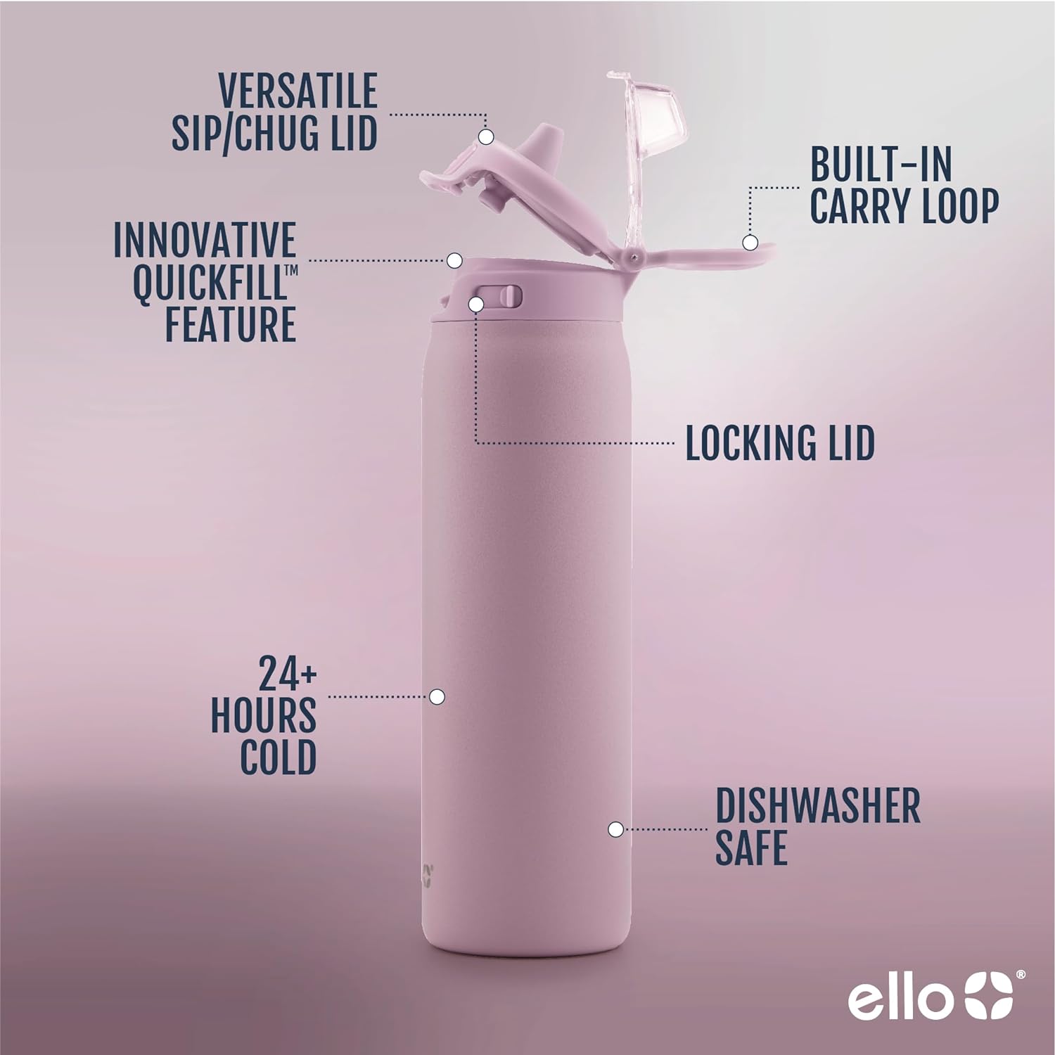 Ello Pop & Fill Vacuum Insulated Water Bottle with QuickFill Technology, Sip and Chug Lid